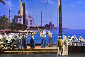 واختُتم الحفل بعرض فني موسيقي بعنوان »سَفَّار«، استلهم التراث البحري الكويتي وسنوات الغوص، وجسّد رحلة الإنسان الكويتي وعلاقته بالبحر، من خلال لوحة مسرحية جمعت بين الفنون الشعبية والموسيقى الأوركسترالية، بمشاركة فنانين وموسيقيين كويتيين، وبقيادة المايسترو الدكتور خالد نوري.