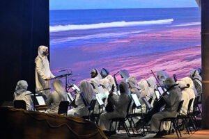 واختُتم الحفل بعرض فني موسيقي بعنوان »سَفَّار«، استلهم التراث البحري الكويتي وسنوات الغوص، وجسّد رحلة الإنسان الكويتي وعلاقته بالبحر، من خلال لوحة مسرحية جمعت بين الفنون الشعبية والموسيقى الأوركسترالية، بمشاركة فنانين وموسيقيين كويتيين، وبقيادة المايسترو الدكتور خالد نوري.
