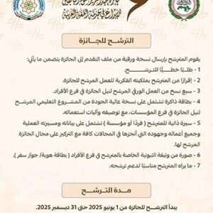 عن فتح باب الترشح للحصول على الجائزة ( الدورة الثانية 2026 )